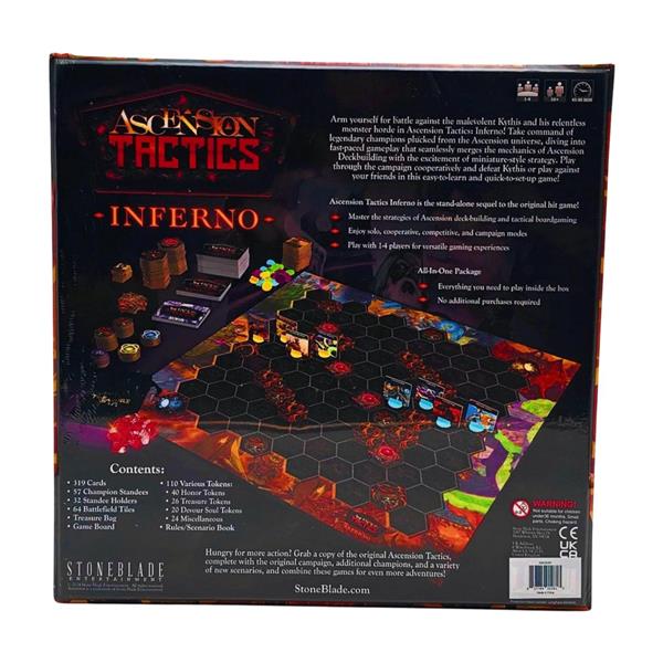 Ascension Tactics: Inferno is a stand-alone expansion to the hit game, Ascension Tactics. Ascension Tactics: Inferno includes all of your favorite gameplay mechanics found in the original game and introduces some new features to take gameplay to a whole new level: