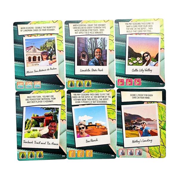 P3 - Mission San Antonio de Padua: When scoring: Double the quantity of Landmark cards in your highway.