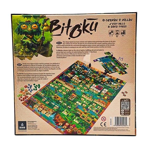 In Bitoku, the players take on the roles of Bitoku spirits of the forest in their path towards transcendence, with the goal of elevating themselves and becoming the next great spirit of the forest. To do so, they will have the help of the yōkai, the kodamas and the different pilgrims that accompany them on their path. This is a hand-management, engine-building game with multiple paths to victory.