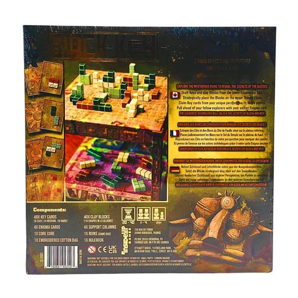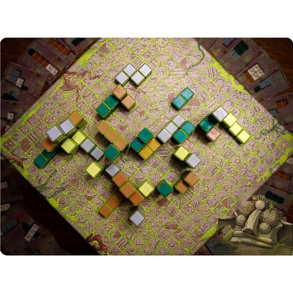 In Block and Key, adventurers place 3D clay blocks in a centralized raised playing area, with the goal of completing their own request cards. The challenge is made more interesting as each player is limited to their "2D" viewpoint.