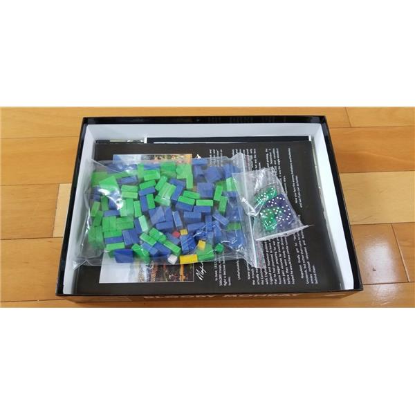 Bloody Monday gives both players a range of challenging decisions... each impulse of every turn. Wooden blocks and colorful PVC stickers represent your troops and the command structure, providing both easy bookkeeping of unit strength and abilities, plus "fog of war" that forces players make choices without knowing more than a commander gets to know.