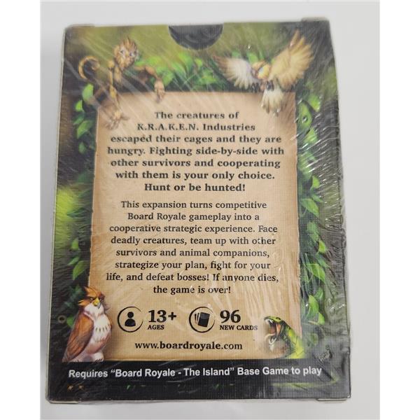 This expansion turns competitive Board Royale gameplay into a cooperative strategic experience. Face against deadly creatures, team up with other survivors and animal companions, strategize your plan, fight for your life, and defeat bosses! If anyone dies, the game is over!