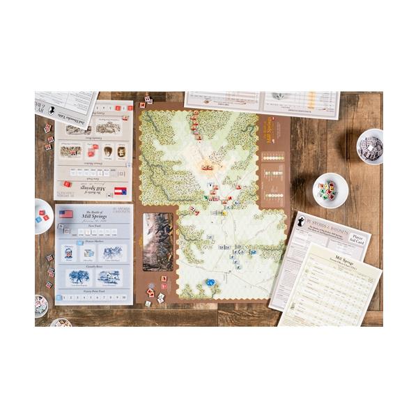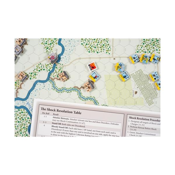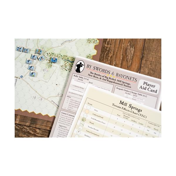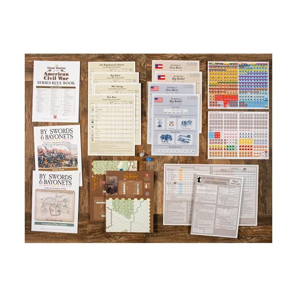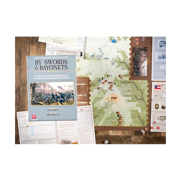 By Swords and Bayonets is a two-player, regimental level wargame and the ninth installment in the award-winning Great Battles of the American Civil War series. Its focus is on small(er)-scale battles of the ACW and will serve as an ideal introduction for players new to the series. By reducing the size of the contending forces, players can more easily learn the detailed, layered rules and subsystems of the GBACW series without fear of being overwhelmed by the size of the battles themselves.