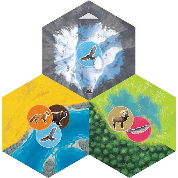 In Cascadia: Landmarks expansion, players create sprawling habitats and place beautiful natural landmarks within them. Landmarks give each environment its own look and feel, while also providing dynamic endgame scoring bonuses!