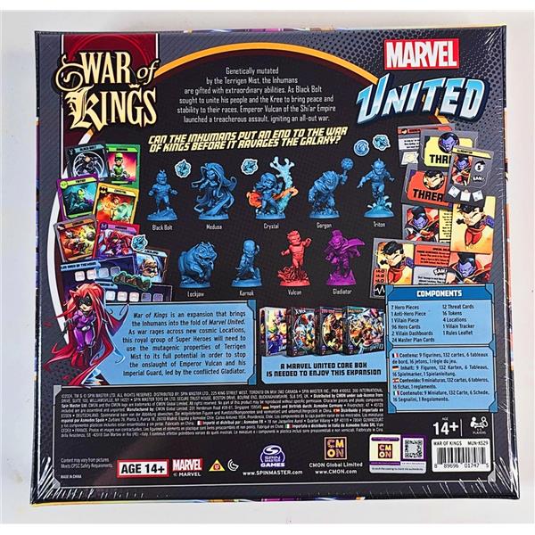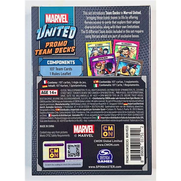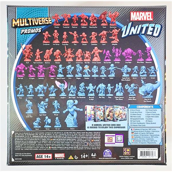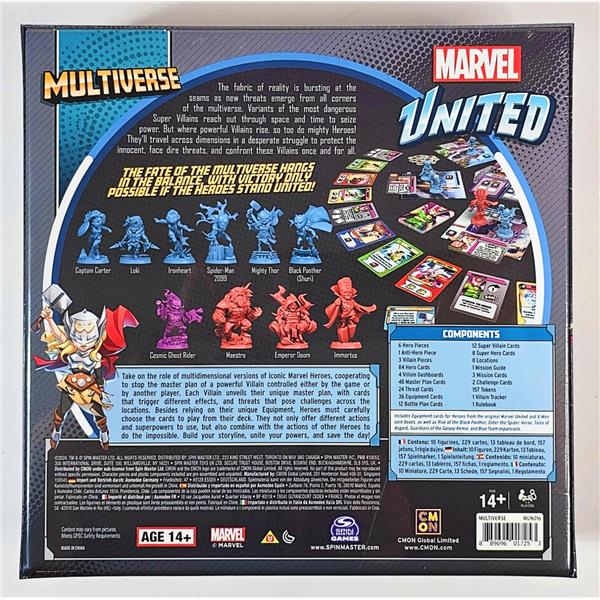 In Marvel United: Multiverse, you take the role of iconic Marvel Heroes cooperating to stop the master plan of a powerful Villain controlled by the game. Each Villain unveils their unique master plan, with cards that trigger different effects, and threats that pose challenges across the locations. Heroes must choose carefully the cards to play from their unique decks, that not only offer different actions and superpowers to use, but also combine with the actions of other Heroes to do the impossible. Build your storyline, unite your powers, save the day!
