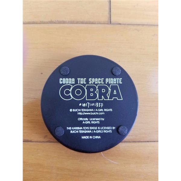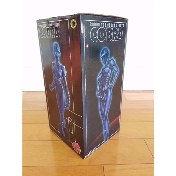 This highly collectible Space Adventure Cobra resin statue stands about 6.5 inch high (16 cm) and comes in a decorative box. It depicts Lady Armaroid in a sexy pose. Total edition size is only 333 pieces worldwide.