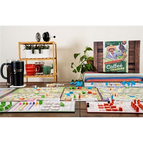 In Coffee Traders, set in 1970s Central and South America, Africa, and Asia, the delicious Arabica coffee beans farmers harvest are sold in Antwerp — and all over the world — to coffee roasters large and small. Work with your competitors to develop the regions you see fit for the best coffee beans while keeping a watchful eye on the market. Construct buildings to help your Fair Trade coffee plantations thrive while enhancing your network for trading coffee. Will your plantations fall to ruin, or will you rise to the top and become the world's greatest coffee trader?