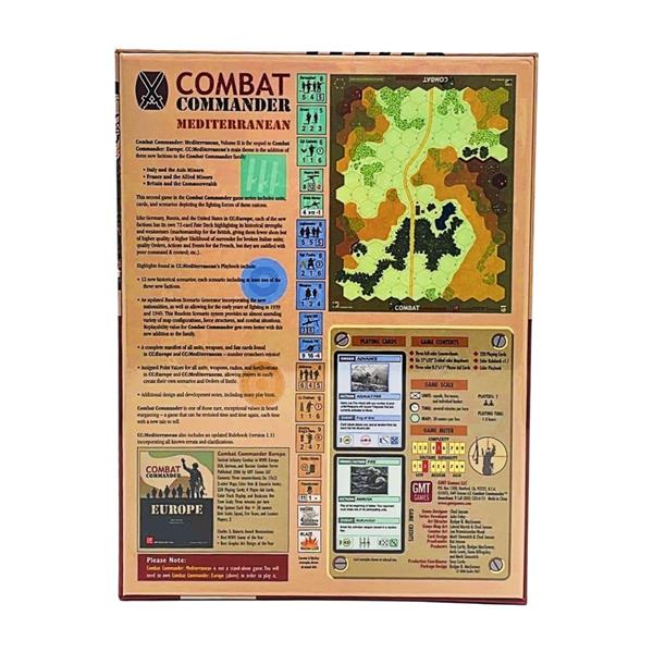 Combat Commander: Volume II - Mediterranean (or "CC:M") is the sequel to Combat Commander: Volume I - Europe ("CC:E"). CC:M's main theme is the addition of three new "nationalities" to the Combat Commander family: