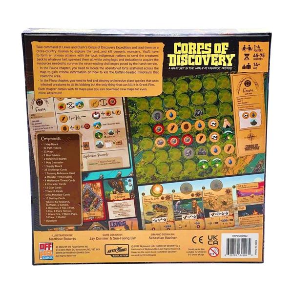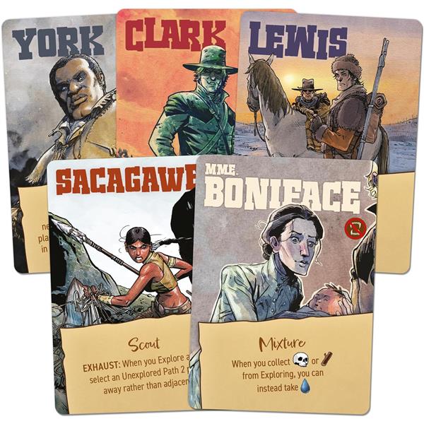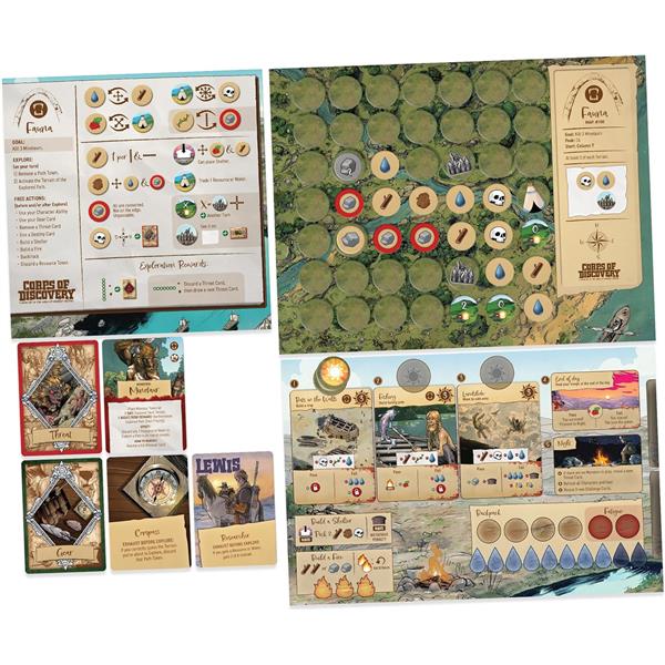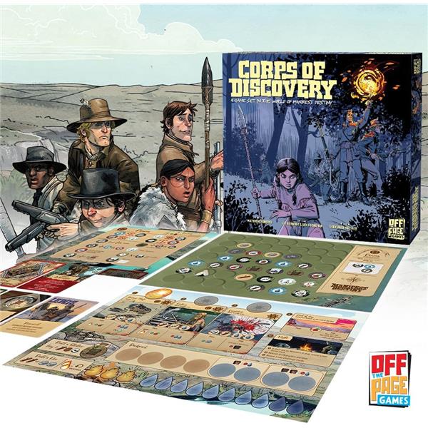 Corps of Discovery: A Game Set in the World of Manifest Destiny is a co-operative deduction game in which players each take the role of one of the crew on the expedition and set out to explore the land. The game board allows for different maps to be inserted into it, so you have many adventures ahead of you.