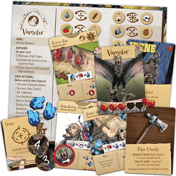 As they explore deeper into the heart of the continent, the Corps of Discovery encounter the Fezron, a species of small, sentient, blue-feathered beings. You share a mutual enemy with the Fezron in the form of the Vameter, a vicious, winged predator that claims the heads of its victims as its own. The Fezron and the crew of the Corps must work together in order to weaken the Vameter and then trap it. You’ll need to plan carefully and be willing to make sacrifices to give your sharpshooters the best chances of putting a bullet into the beast before it takes to the air to elude capture.