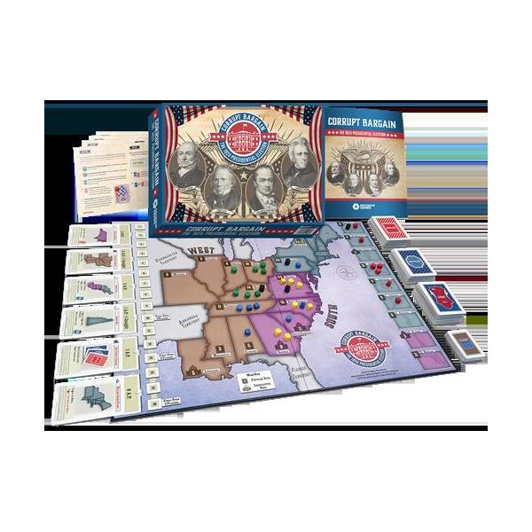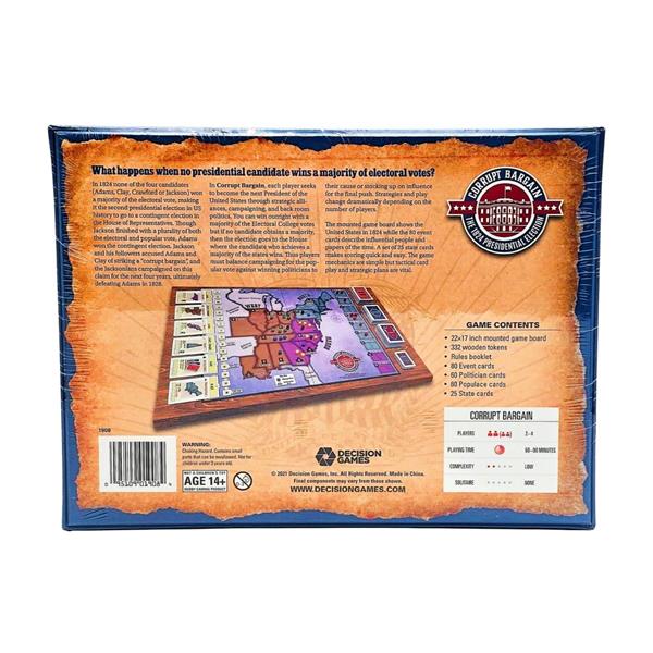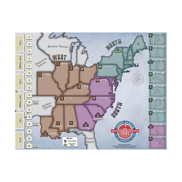 Games can generally be played in 60-90 minutes. Mounted game board of the United States in 1824, 200 cards including 80 event cards describing the various events during the election and the time period. Like Bleeding Kansas, the game mechanics are simple but tactical card play and strategic plans are plentiful.