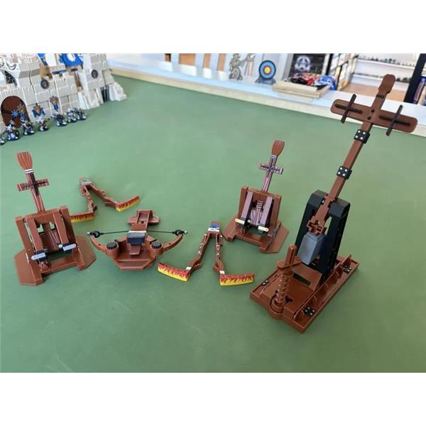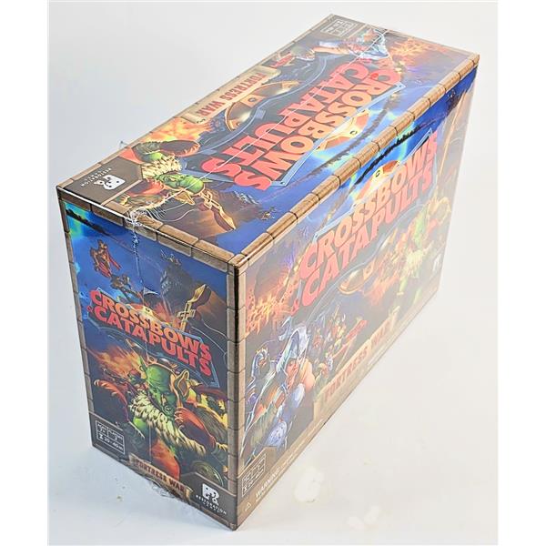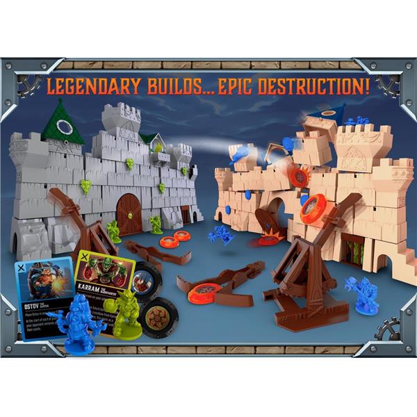 Crossbows & Catapults: Fortress War is a restoration of Crossbows and Catapults, the 1983 classic game of kinetic warfare. Each player builds their castle, then players take turns using their weapons to fire discs at their opponent's castle, trying to knock over their warrior figures.