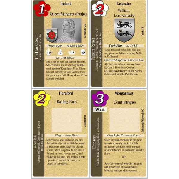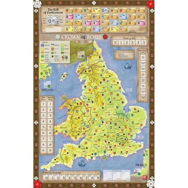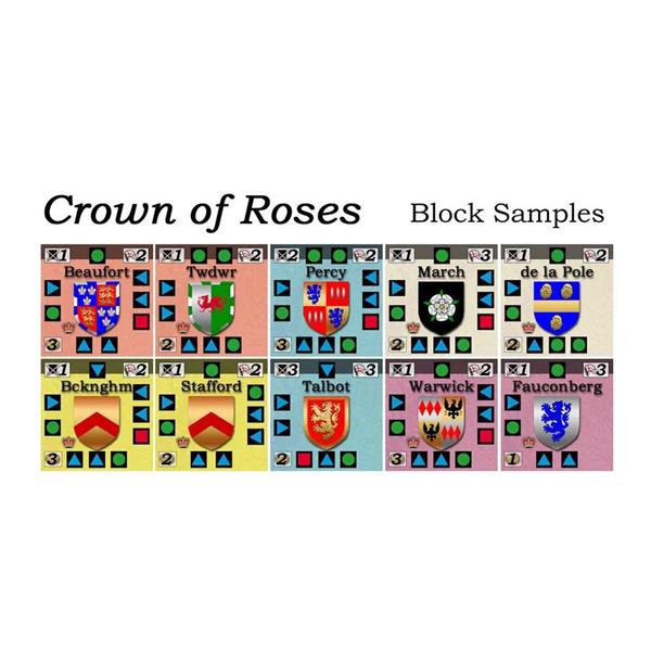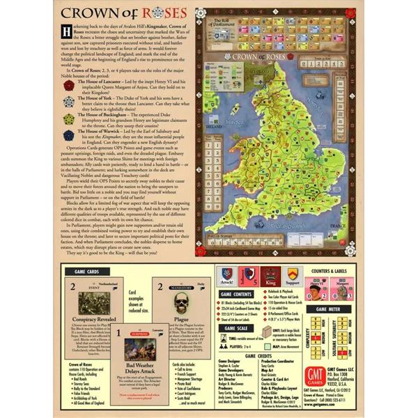 Using intuitive mechanics, Crown of Roses offers players a historical feeling with tremendous strategic depth and excellent replayability. Unit starting locations vary with each turn and even with each game, and the use of blocks creates the "fog of war" of limited intelligence on enemy strength and deployment. Random game events throw a touch of the chaos of the era into the mix, and the multiple uses for the player action cards leads to a level of uncertainty where enemy plans are concerned.