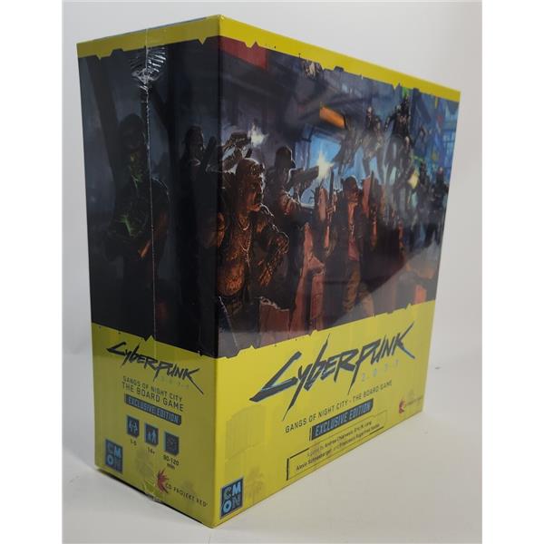 Cyberpunk 2077: Gangs of Night City is a big box strategy game with miniatures in which gangs fight for control of a city, with the city also being a living part of the game.