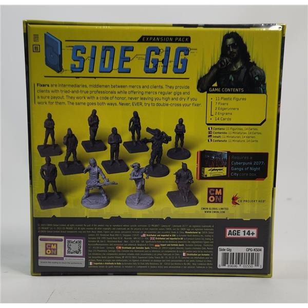 The Kickstarter Exclusive Side Gig Expansion adds Fixers and Engrams to your games of Cyberpunk 2077: Gangs of Night City.