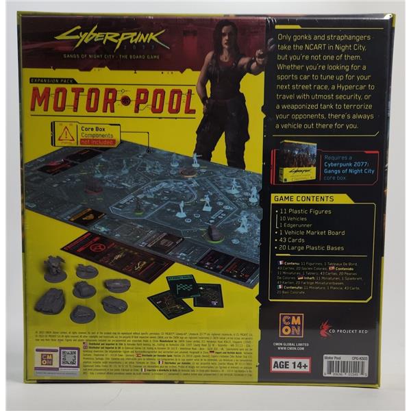 The Kickstarter Exclusive Motor Pool Expansion adds 10 vehicles, vehicle opportunity cards, and a brand-new story to play in Cyberpunk 2077: Gangs of Night City.
