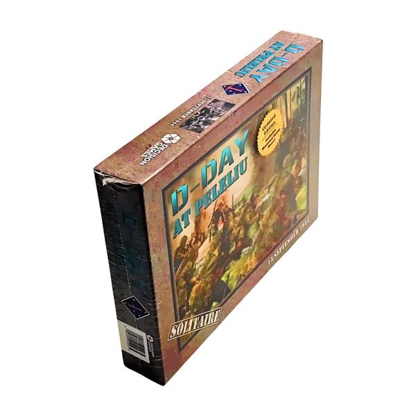 D-Day at Peleliu is a solitaire game simulating the amphibious invasion of Peleliu in the Palau Islands. The Marines assaulted with the primary goal of capturing the airstrip nestled amid jungle and overlooked by forbidding mountain terrain. Though Maj. Gen. William Rupertus, commander of the division, predicted a quick four-day victory, the battle was instead a two-month fight to the death against some 10,000 tenacious Japanese.