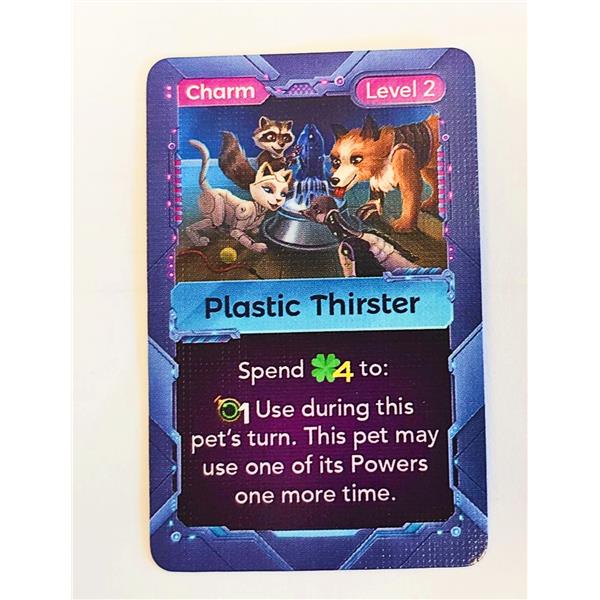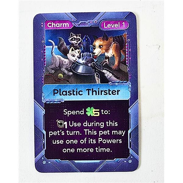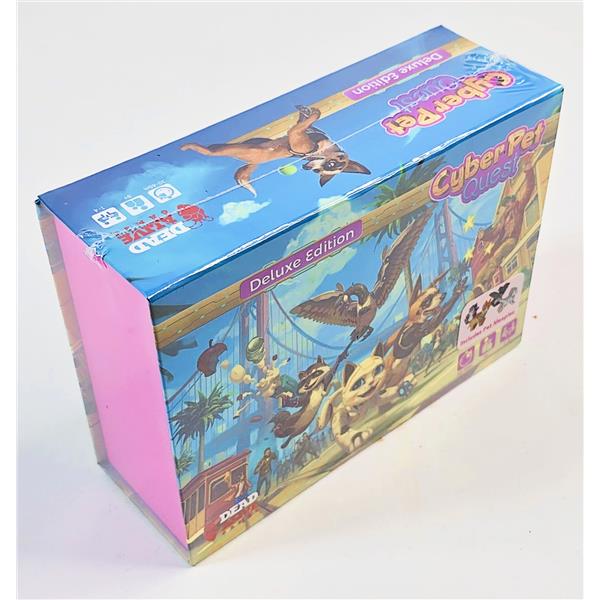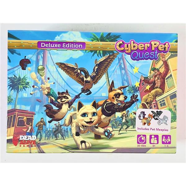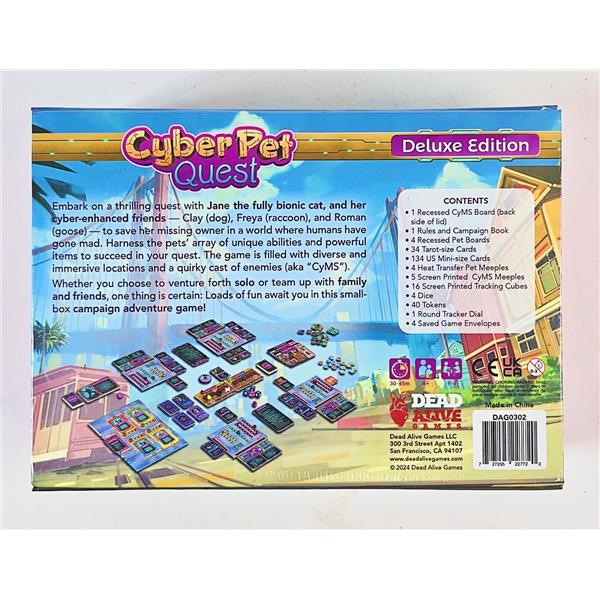 Designed for 1-4 players, Cyber Pet Quest is played as a multi-chapter campaign. Taking the roles of the four pets, players investigate and interact with the environment, complete chapter objectives, gain power items and charms, and outsmart the enemies who are trying to stop them. The campaign has twelve chapters in a branching format so that players can play the full game multiple times to see the different branching stories.