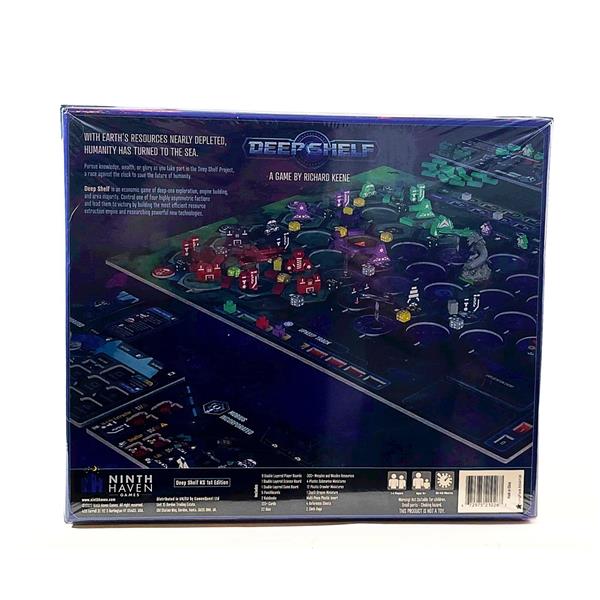 Deep Shelf is an game of deep-sea exploration, exploitation, development, and research. Players take on the role of competing corporations seeking to find and develop resource nodes, extract rare earth metals, transport them to the surface and research the unexplored deepest reaches of the ocean.