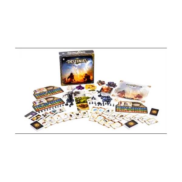 The Destinies system offers a fully story-driven, app-supported, RPG-like board game experience, without the need for a game master. Each scenario depicts a part of a vivid world, full of dark stories, epic NPCs and mysteries to solve. Each player takes the role of a hero on a quest to fulfill their destiny. Each destiny is a final goal of the character and has at least two, completely different paths to victory, composed of branching series of quests. Players compete with each other to push the world towards their own destiny.