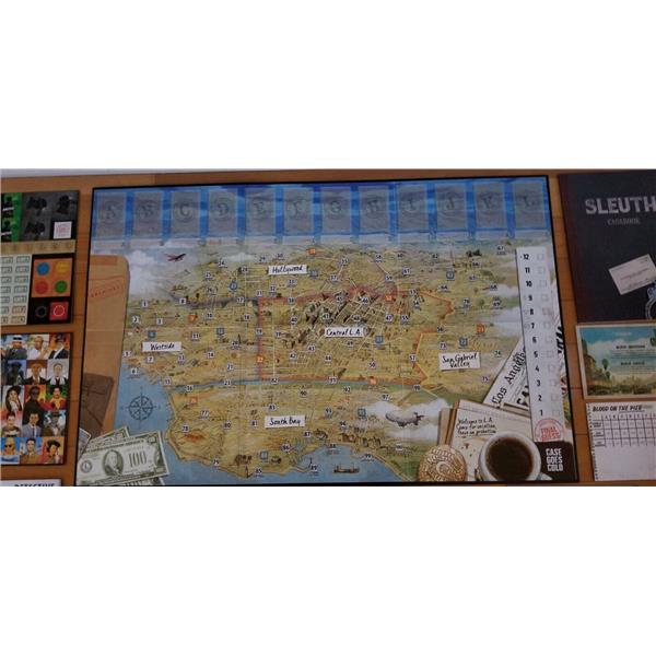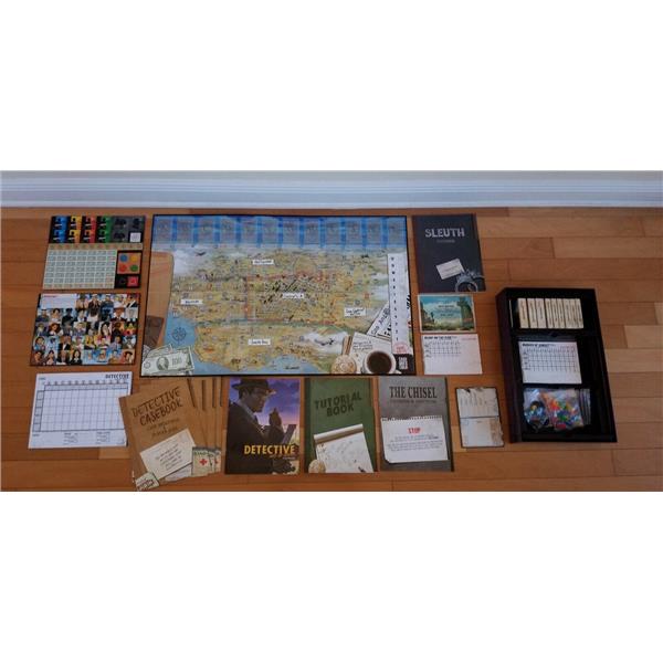 Detective: City of Angels, set in the dark and violent world of 1940s Los Angeles, is a game of mystery, deception, and investigation for 1-5 players. Most players will step into the shoes of LAPD homicide detectives, hungry for glory and willing to do whatever it takes to successfully close a case, even if that means intimidating suspects, concealing evidence, and hiring snitches to rat on their fellow detectives. One player, however, will take on the role of The Chisel, whose only goal is to stall and misdirect the detectives at every turn using bluffing, manipulation, and (often) outright lies.