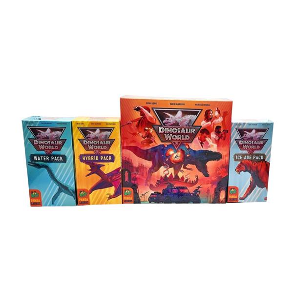 Each round in Dinosaur World, you draft a new résumé card to acquire new workers; spend workers to take public actions building your park and acquiring DNA; spend further workers to take private actions improving that park; then drive your jeep around experiencing the wonder and excitement of what you have built! Throughout the game you acquire victory points through a variety of means — and possibly a few visitor deaths as a natural consequence of overly enthusiastic dinosaur encounters. At the end of the game, you lose points if you accumulated too many deaths, then the player with the most points wins!