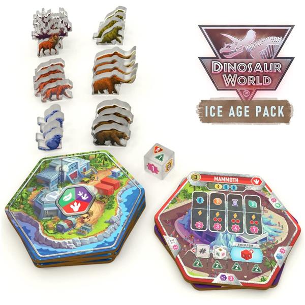 There's a chill in the air... And these creatures feel right at home! The Ice Age Pack adds even more variety to your park with additional components and gameplay. Place these mammal enclosures anywhere in your park (yes, anywhere - even next to dinosaurs) and roll a special Ice die when activating them. You will also score adjacency bonuses for these enclosures at the end of the game. However, you can only claim one bonus per creature you've built - so make sure to plan wisely!