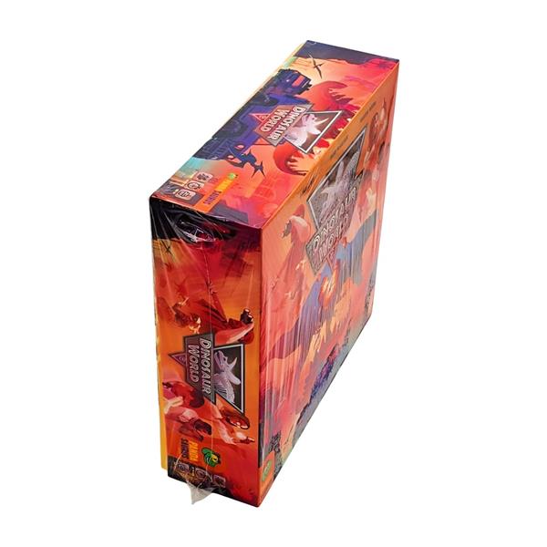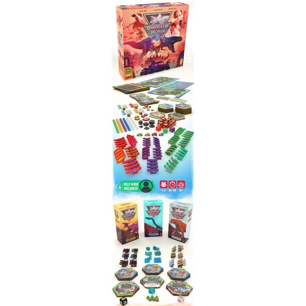 Each round in Dinosaur World, you draft a new résumé card to acquire new workers; spend workers to take public actions building your park and acquiring DNA; spend further workers to take private actions improving that park; then drive your jeep around experiencing the wonder and excitement of what you have built! Throughout the game you acquire victory points through a variety of means — and possibly a few visitor deaths as a natural consequence of overly enthusiastic dinosaur encounters. At the end of the game, you lose points if you accumulated too many deaths, then the player with the most points wins!