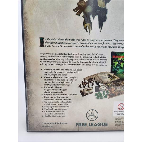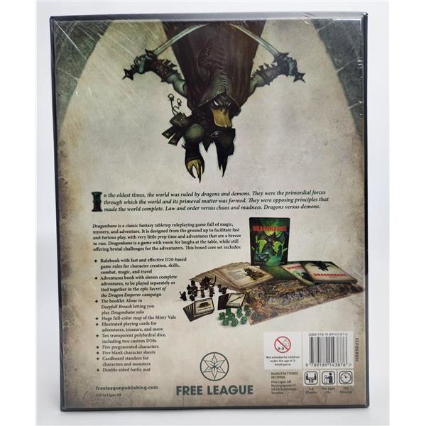 Dragonbane is a classic fantasy tabletop roleplaying game full of magic, mystery, and adventure. It is designed from the ground up to facilitate fast and furious play, with very little prep time and adventures that are a breeze to run. Dragonbane is a game with room for laughs at the table, while still offering brutal challenges for the adventurers. This boxed core set includes: