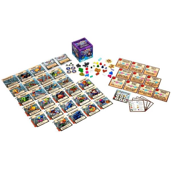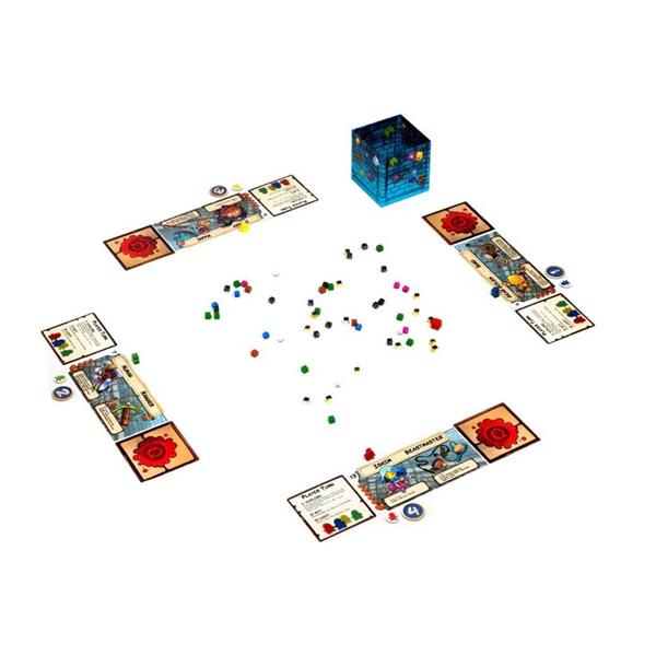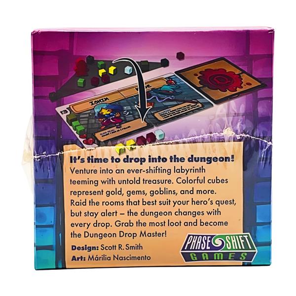 Dungeon Drop is a lightweight dungeon crawler for 1-4 players, featuring a novel spatial element that assures no two games could possibly be the same. At the start of each game, cubes of varying colors, which represent both loot and monsters in the dungeon, are dropped onto the table from a height of 6 to 12 inches. This creates a dungeon layout with infinite possibilities. You then use your customized hero to explore the dungeon, use your unique abilities, and ultimately loot a room that won't kill you!