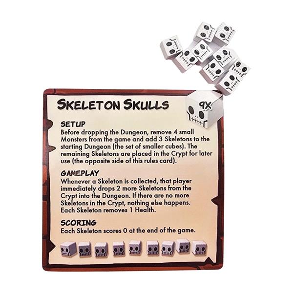 Heads will roll! This rattling mini-expansion of skulls and bones starts with just a few skeletons in the dungeon, but they can quickly grow into an undead swarm.