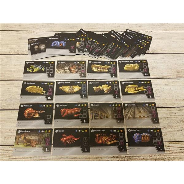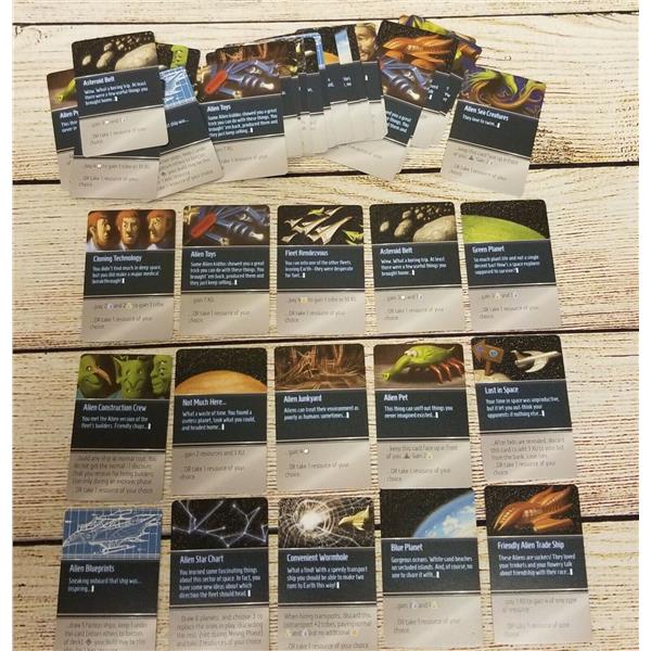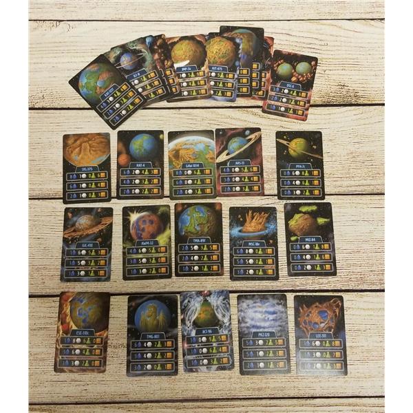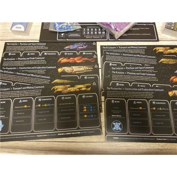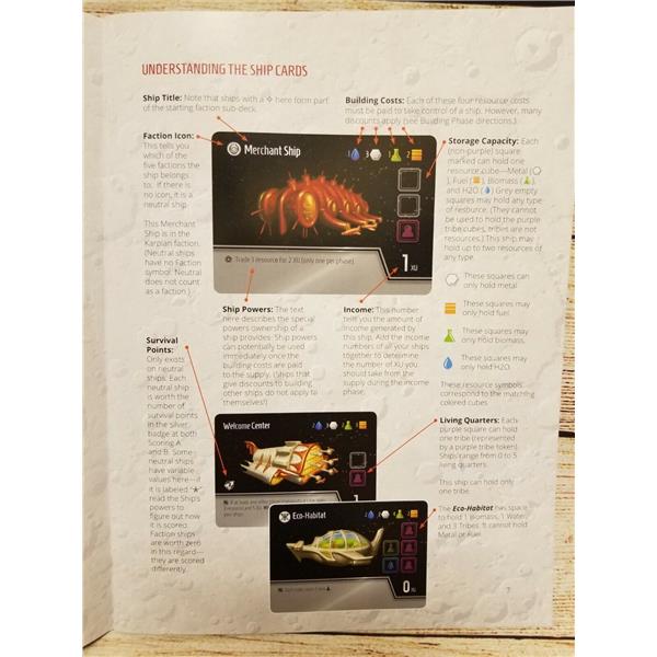 Players must decide whether to prioritize building ships within one faction (to score bonus points) or whether it might be better to build ships with synergy for powering their actions. Is it better to spend your resources on more ships or rescuing more survivors off of Earth? Should you gamble on explorers or just take a turn to gather more resources? And exactly how much money does my opponent still have? Can they outbid me for the action I really need to perform? A variety of strategic and tactical dilemmas awaits...