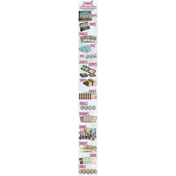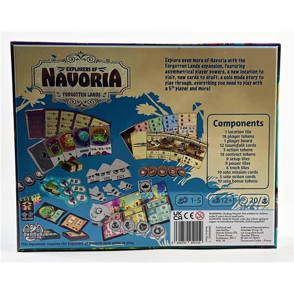 Explorers or Navoria: Forgotten Lands brings a huge range of new content that changes how the game plays. Players will now have asymmetrical powers, and new starting equipment. There is also a new worker location and a brand new deck of cards.