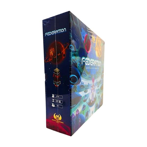 Federation is an interactive Eurogame with an innovative double-sided worker placement mechanic. Every time you place a worker, you must decide if that worker will vote in favor of legislation that helps your cause or provides funding for local improvement projects. Every action is critical. At the end of the year, the votes are counted, and whichever legislation becomes law offers points for the players who have the highest level of influence in that area. Players must keep an eye on each opponent to see the places where they are strong or weak. Making sure that the areas you specialize in will score at the end of the game is critical to your success. Plan your strategy and execute it with the proper timing, and that spot in the Federation will be secured!