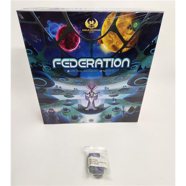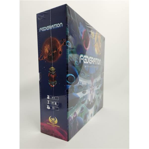 Federation is an interactive Eurogame with an innovative double-sided worker placement mechanic. Every time you place a worker, you must decide if that worker will vote in favor of legislation that helps your cause or provides funding for local improvement projects. Every action is critical. At the end of the year, the votes are counted, and whichever legislation becomes law offers points for the players who have the highest level of influence in that area. Players must keep an eye on each opponent to see the places where they are strong or weak. Making sure that the areas you specialize in will score at the end of the game is critical to your success. Plan your strategy and execute it with the proper timing, and that spot in the Federation will be secured!