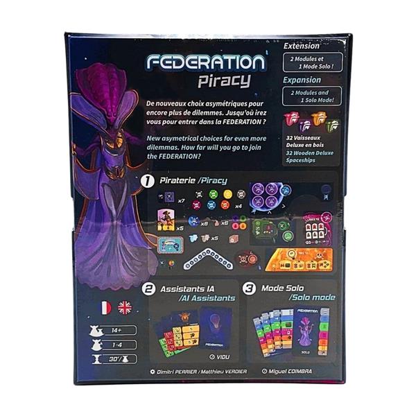 The Federation: Piracy expansion is made up of two modules: the Piracy module and the AI Assistant module. Both of them can be played together or separately. The purpose of these modules is to bring more dilemmas to players. They also allow for a new asymmetry decided by the player and not imposed.