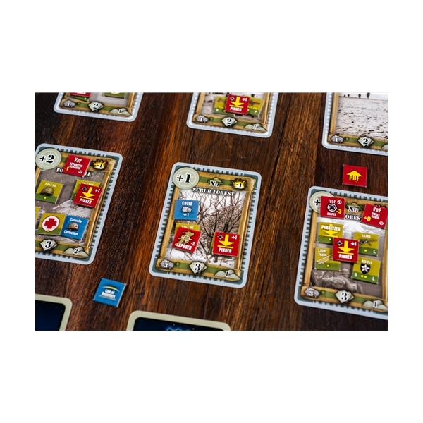 The 9th Infantry Regiment “Manchus,” 2nd Infantry Division faced three weeks of intense combat from December 13th, 1944 to January 8th, 1945 as part of the Battle of the Bulge. This campaign covers those critical days. The Campaign consists of seven new missions featuring a new Terrain Deck for the forests, fields, and villages of the Ardennes. The counter sheet includes a U.S. heavy machine gun platoon, Bangalore torpedoes, anti-tank mines, wire entanglements, German tanks, assault guns, Panzergrenadiers, and Volksgrenadiers.