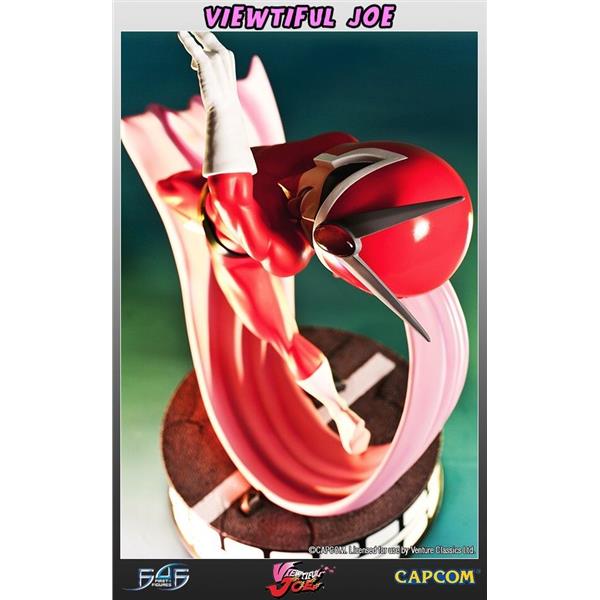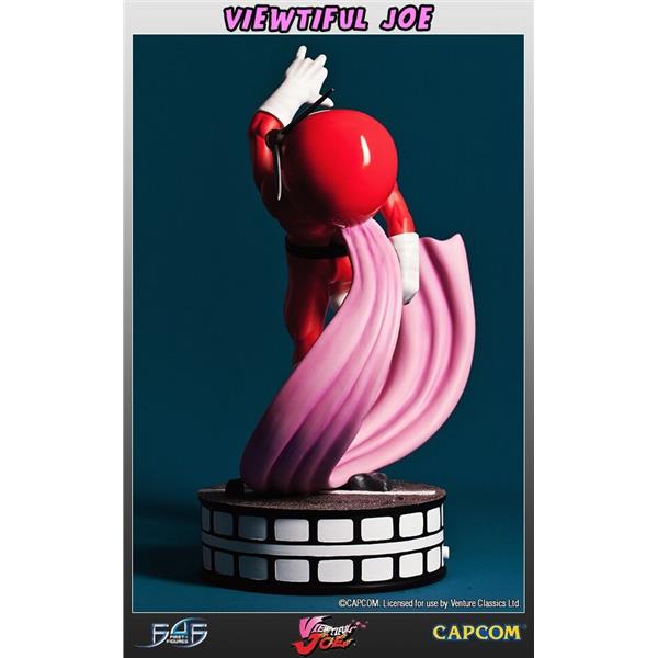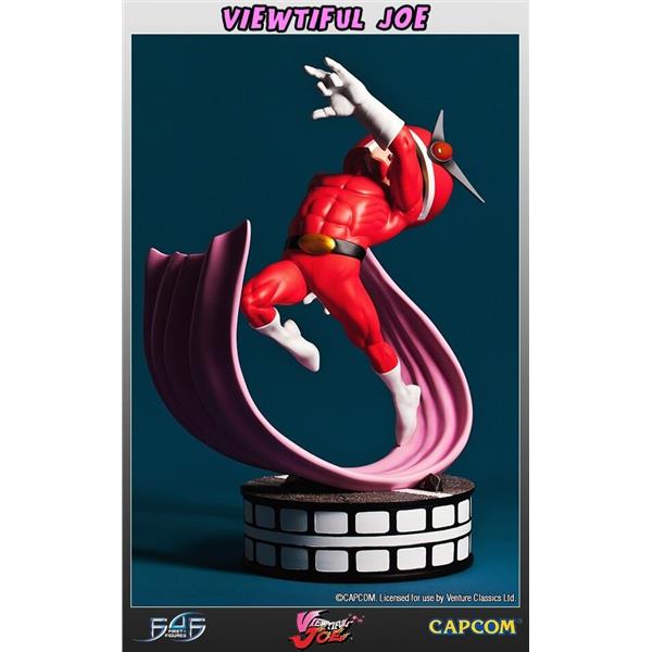 Viewtiful Joe is portrayed with the same comical appearance as seen in the series. The figure itself stands upon a detailed road surface in a dynamic pose, edged with a film-reel style design, tying in with Viewtiful Joe's strong movie themes. All of Viewtiful Joe's details have been captured in high quality, hand painted polystone, resulting in an awesome, striking 13.5 inch tall statue to add to the collection of any Capcom, or indeed Viewtiful Joe fan.