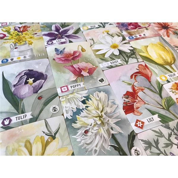 Spend the afternoon in your Floriferous garden. Relax while enjoying this elegant game of strolling through your garden and collecting flowers. Find joy in the abundance of nature. Find the most joy by collecting flowers and pairing them with abundance, desire, and mastery cards.