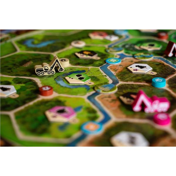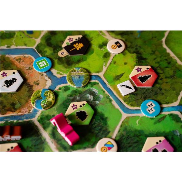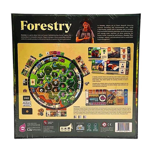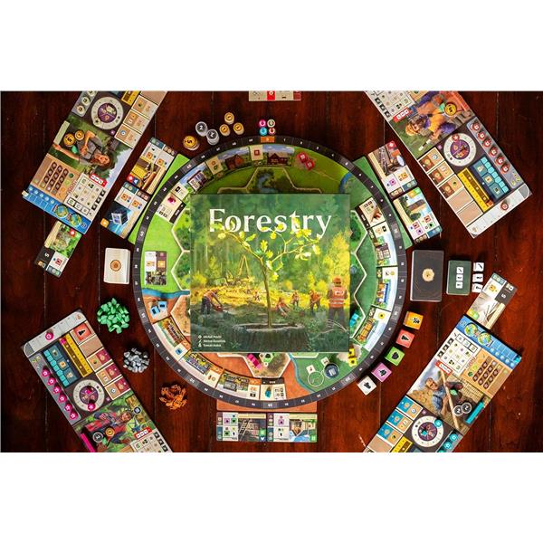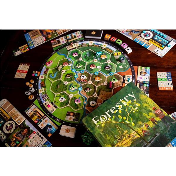 As a Eurogame focused on strategic action management, Forestry relies on a dual-worker system in which players control a harvester and a manager, each with distinct responsibilities. The harvester moves through the forest, felling trees to meet contract demands, replanting saplings, constructing infrastructure, and adjusting water retention to promote a healthy ecosystem. Meanwhile, the manager oversees resource collection, utilizes sawmill buildings, fulfills contracts, and optimizes wood processing. Players must carefully allocate action points between these workers to make sustainable choices, enhance infrastructure, and ensure the forest thrives while meeting demand.