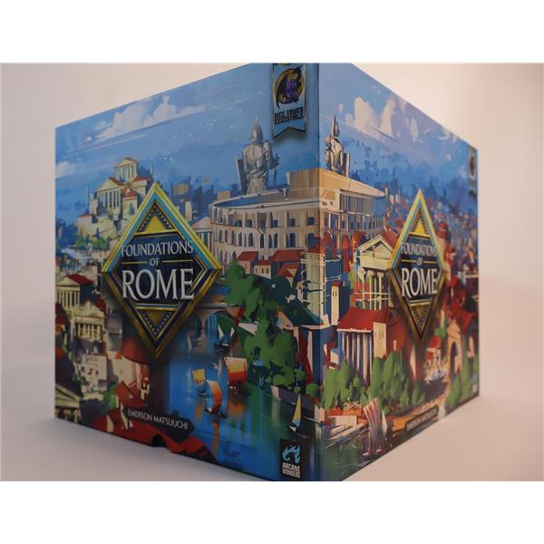 Foundations of Rome is the next, and biggest game to date, in the Dice Tower Essentials line and is designed by famed designer Emerson Matsuuchi.
