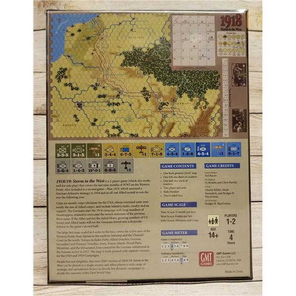 In 1992, Ted S. Raicer published his first design in the late lamented Command Magazine, 1918: Storm in the West, covering the last nine months of WWI on the Western Front. The game was an immediate success, earning a Charles S. Roberts Award nomination, and leading to the design of a Plan 1919 variant which assumed a German defensive strategy in 1918 and an all-out Allied assault to win the war the following year. GMT is pleased to offer a new boxed version of these classic Great War designs, with new artwork, and including an additional 1918 Allied Offensive scenario published later in Command.
