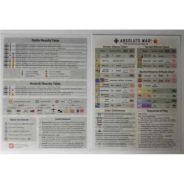The design emphasis has been placed on making the game very player-friendly and manageable in its level of scope, difficulty and time of play. With a very low total counter count and density, this quick playing (while still realistic) simulation presents players with deep strategy meriting contemplation. A system of map areas has been adopted and movement has been streamlined. Combat is handled by the two decks of cards (one German and one Soviet) - meaning no combat tables or dice to roll. These cards are the crux of the game system offering even more variety than regular Combat Result Tables. Like in “No Retreat!” they are used to generate events and special game abilities (ex: Major Offensives, Partisan Raids, Siege Artillery, Increased Replacements, etc…) and now also effortlessly resolve all battle outcomes. The set-up for a campaign or a scenario will be lightning fast: in less than 10-15 minutes you can get the game going! This high degree of re-playability means that it will reward players' experience with increased skill.