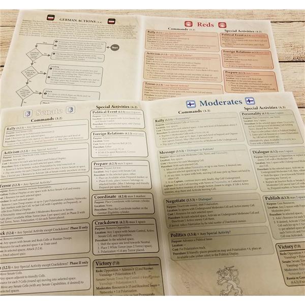 - 3 Faction player aid foldouts, each including the German Actions Flowchart