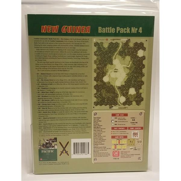 Combat Commander: Battle Pack #4 - New Guinea is the fourth themed collection of scenarios for use with the Combat Commander series of games. The theme of this fourth Battle Pack shifts to the actions in New Guinea from January 1942 through July 1944, following the major campaign phases with characteristic actions. CC -New Guinea features fourteen new scenarios printed on cardstock as well as six new maps.