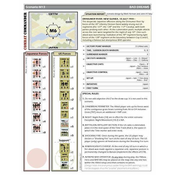 M14 - "Encirclement of Troop C" set on the Driniumor River, featuring a Troop of US Cavalry trying to stave off being surrounded by Japanese units that had surprised them by walking casually into their positions, 21 July 1944. NOTE: CC: Normandy is not a complete game and requires ownership of both Combat Commander: Europe and Combat Commander: Mediterranean to play.