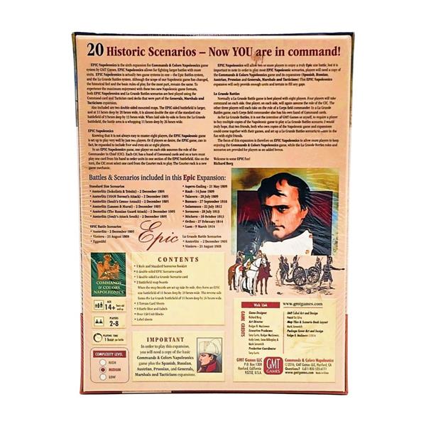 EPIC Napoleonic will allow two or more players to enjoy a truly Epic size battle, but it is important to note in order to play most EPIC Napoleonic scenarios, players will need a copy of the Commands & Colors Napoleonic game and its expansions (Spanish, Russian, Austrian, Prussian and Generals, Marshals and Tacticians) This EPIC Napoleonic expansion will only provide enough units and terrain to fill any gaps.