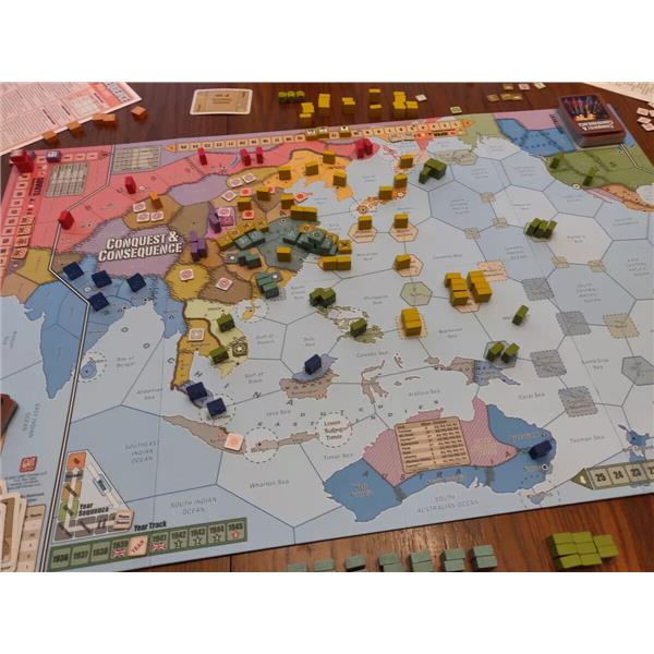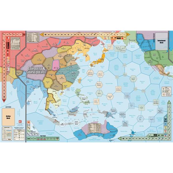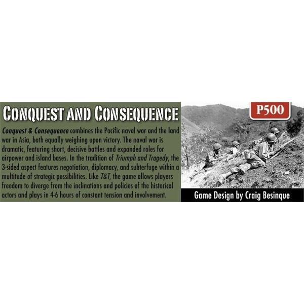 Conquest and Consequence brings the Triumph and Tragedy system to the Pacific/East Asia theater during the same 1936-1945 time period. Like T&T, it is designed for 3 players, maintaining the 3-sided dynamic that adds so much variety and intrigue to the system.