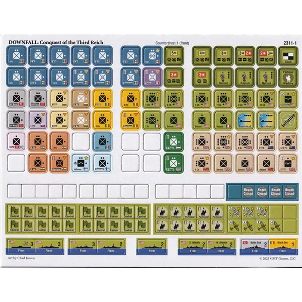 Chad Jensen researched and experimented with Downfall over a ten-year period, taking inspiration from classic strategic WWII games and incorporating ideas from his Fighting Formations initiative system to arrive at the four-faction, two-front design approach. John Butterfield has picked up the design where Chad left off, bringing it to completion.