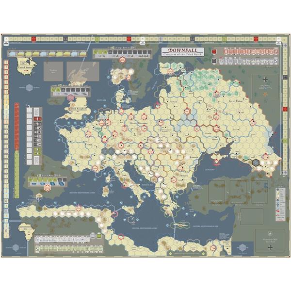 Downfall begins at the high-water mark of Axis expansion in November 1942 and ends in May 1945 at Germany’s surrender. The players control land units, air units, partisans, fleets, and submarines in this titanic struggle. With both players in command of factions on opposite fronts, each is constantly challenged to launch offensives and conduct desperate defenses. On the east front, the greatest land war in history sweeps from Stalingrad to Berlin; in the west, land warfare, naval operations, amphibious invasions, and strategic warfare combine in the quest for victory.